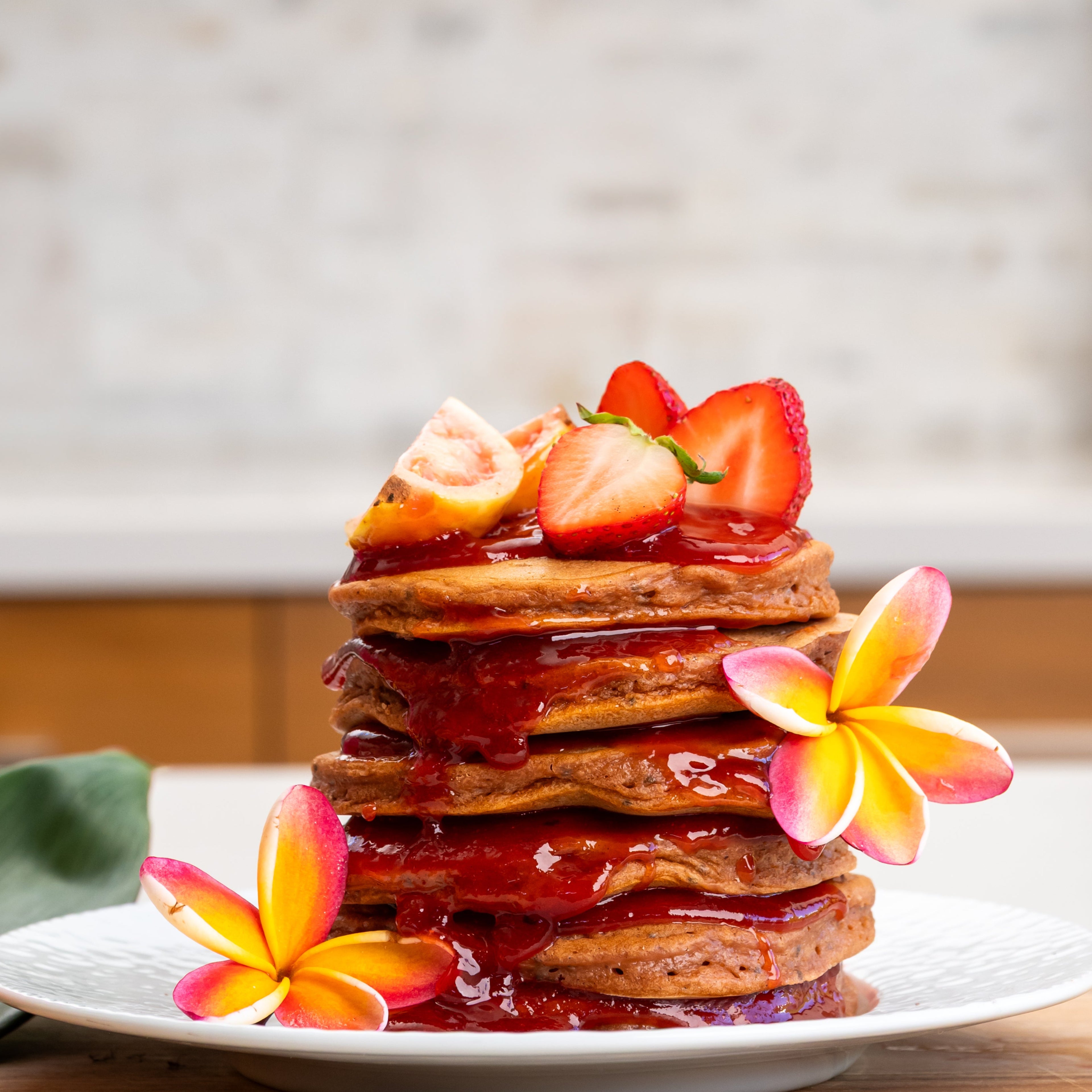 These Guava Strawberry pancakes are absolutely delicious! They are light, fluffy and perfectly golden brown. Each bite melts in your mouth with just the right balance of sweetness. I top them with Chaga Maple. A mst try for any pancake lover!