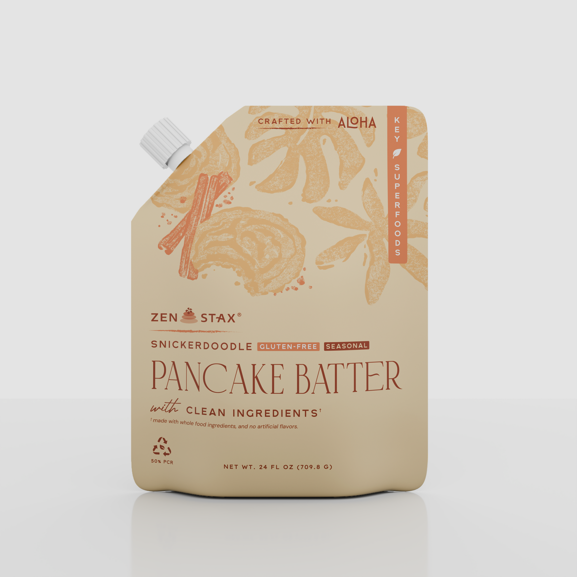 Available in a 24oz pouch of wet, frozen batter (no preservatives or additives). Batter lasts about 1 year frozen and about 1 week once defrosted and refrigerated. You can also freeze the cooked pancakes and pop them in the toaster oven for an even easier breakfast or snack!